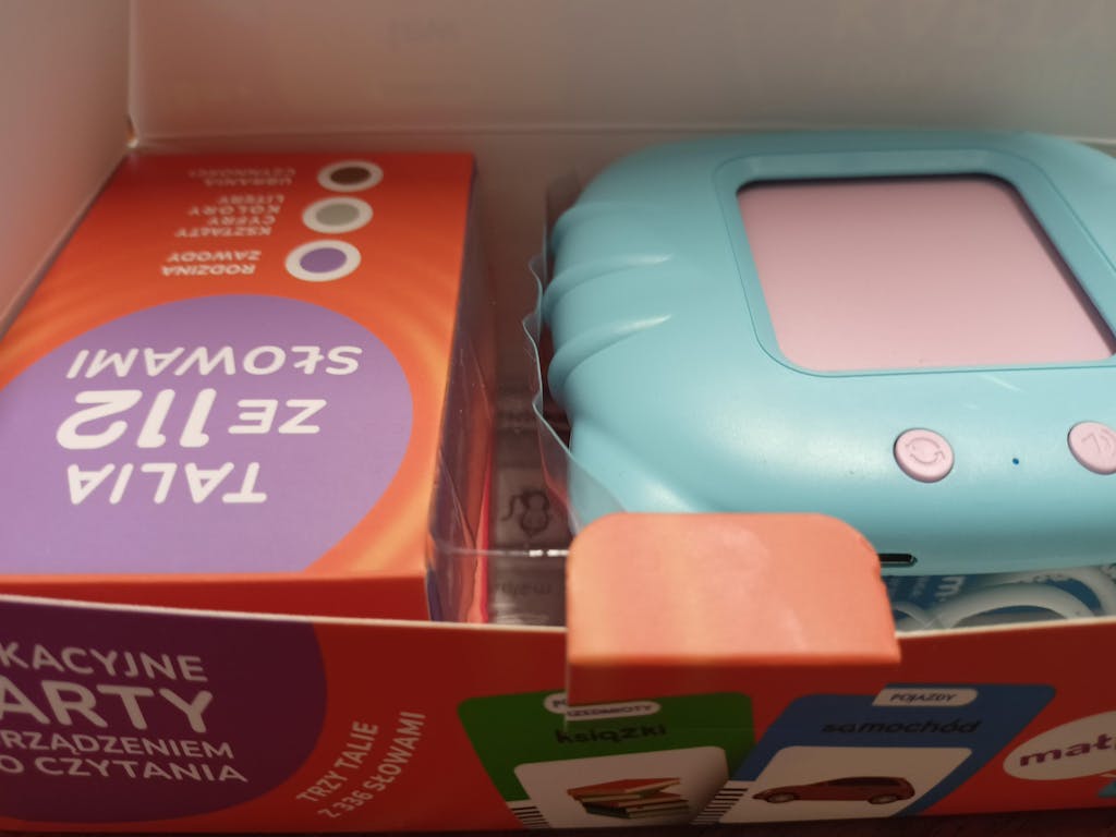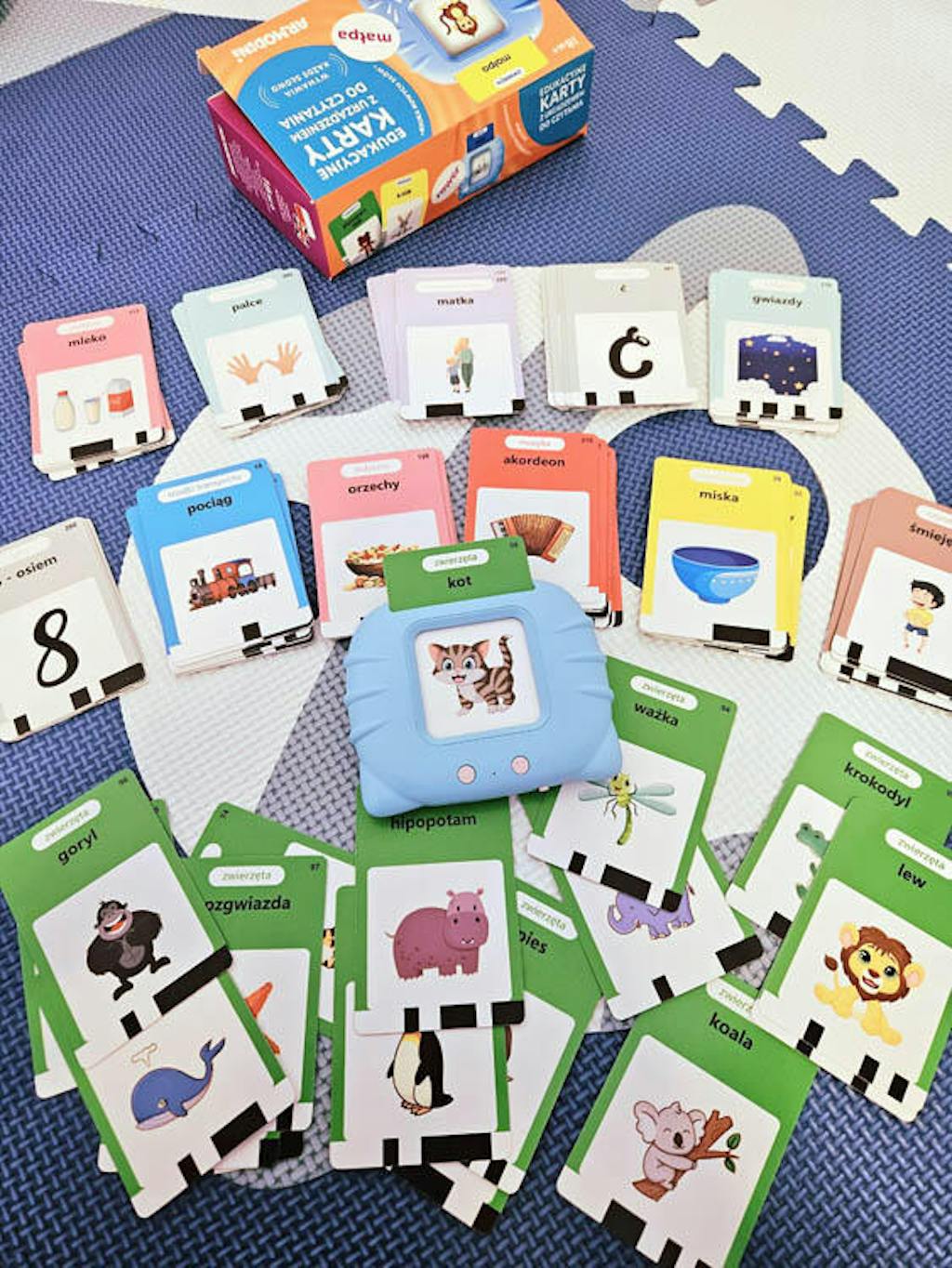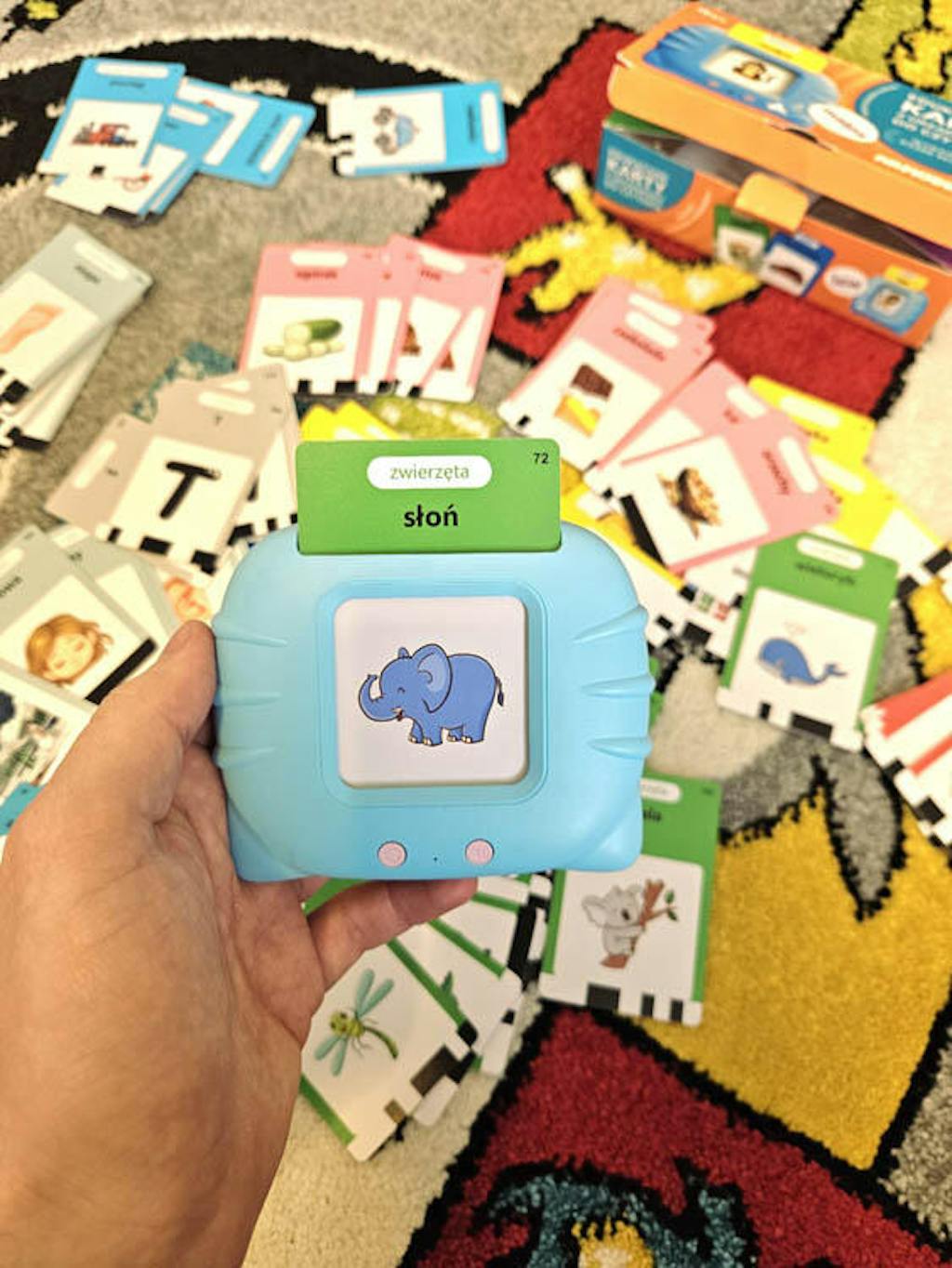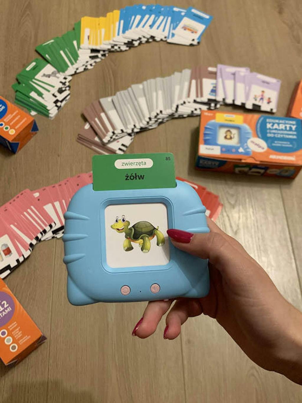 Szukaliśmy sposobu, aby pomóc naszej córce nauczyć się więcej słów, i to urządzenie okazało się idealnym rozwiązaniem. Kupiliśmy jej cały zestaw. Już od pierwszej zabawy zaczęła powtarzać nowe słowa. Dźwięk jest dobrze słyszalny, a rozmiar urządzenia jest wygodny dla małych rączek. Różnorodność kart utrzymuje jej zainteresowanie, a wkrótce zaczniemy korzystać także z funkcji w języku angielskim.